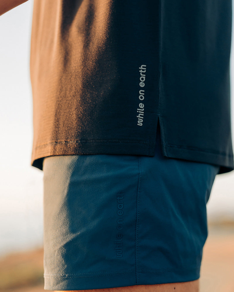 From while on earth. A feather-light performance tee that moves with you and never clings. Breathable, sweat-managing fabric built for the hard parts: long runs, tough intervals, hot days. Wear it when you’re choosing to persist.